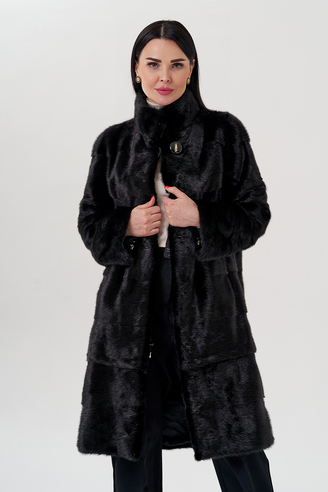 Шуба-трансформер из меха норки. Черный цвет меха практичный и универсальный, подойдет к любой одежде. Длина изделия 95-100 см, но с помощью потайных молний низ изделия можно укоротить. Застегивается на крючки и пуговицу. Воротник стойка защитит от ветра. Пластины меха в поперечном раскладе. Подклад из полиэстера, что делает изделие прочным и термостойким.